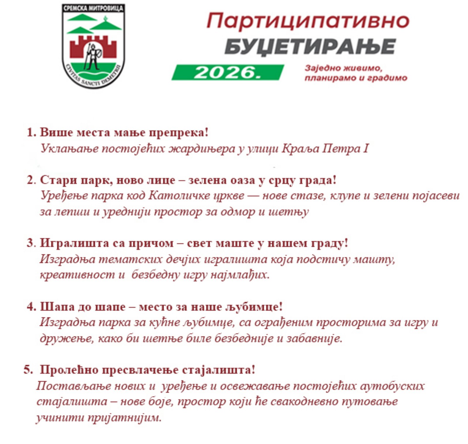 Grad Sremska Mitrovica i ove godine uključuje građane u planiranje budžeta za 2026. godinu.